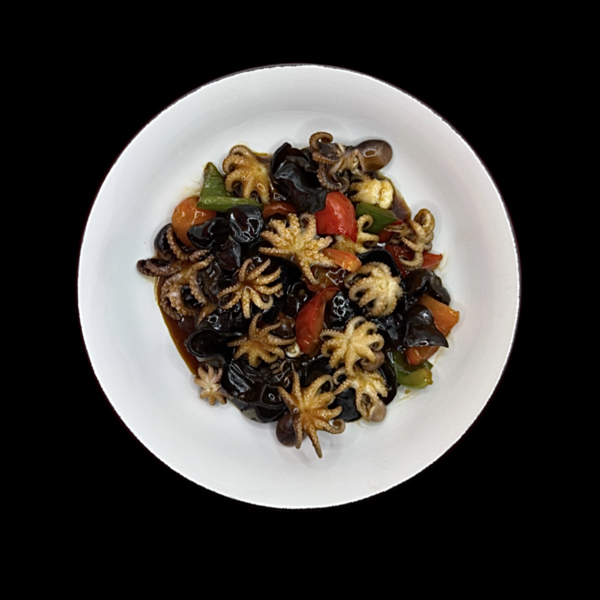 Основні інгредієнти : бейбі восьминіг , чорний гриб , болгарський перець