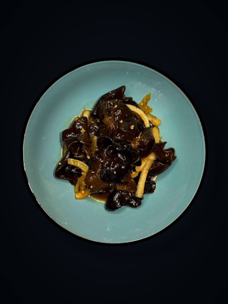 Чорний гриб,часник,біла цибуля,ароматний соус