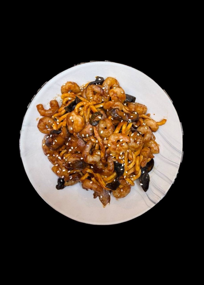 Смажена фунчоза з креветками в часниковому соусі 🌶️🌶️🌶️